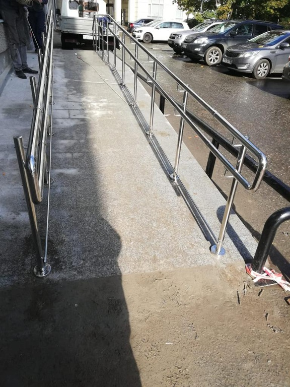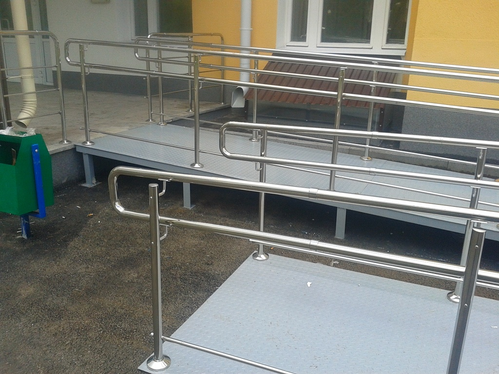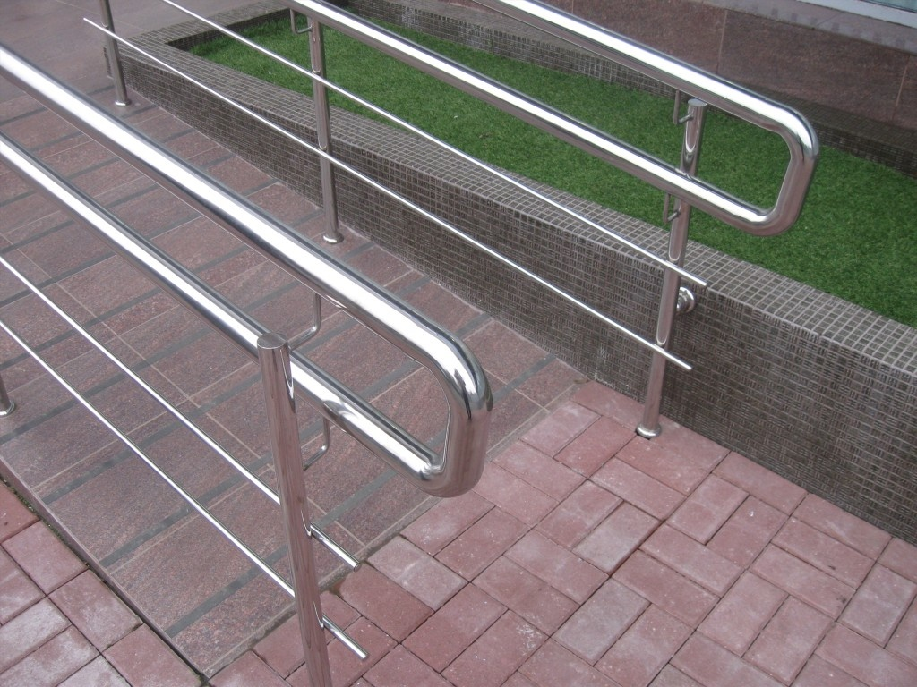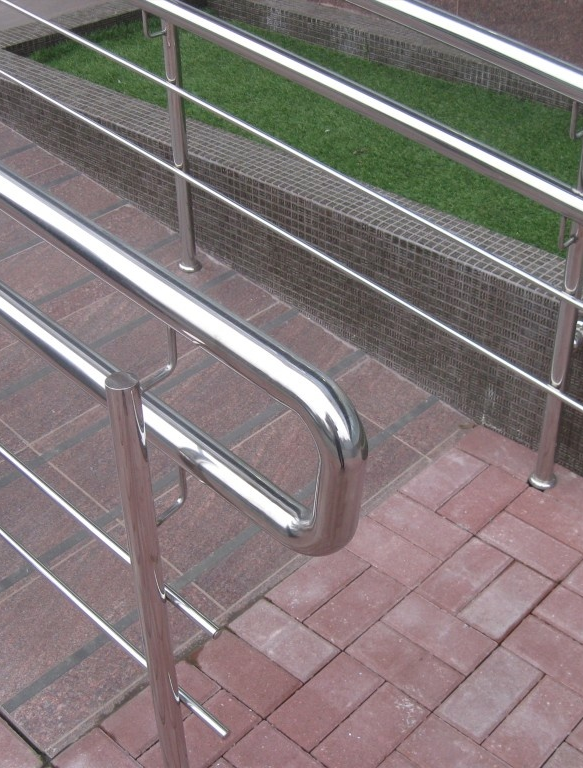 Ограждения пандуса из полированной нержавеющей стали AISI-304.